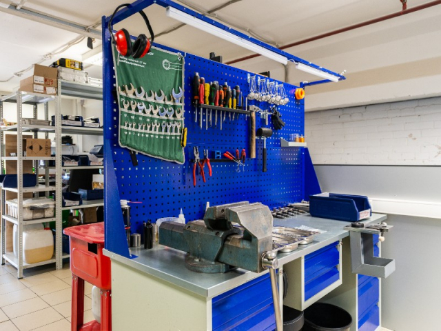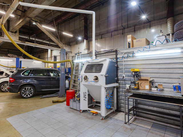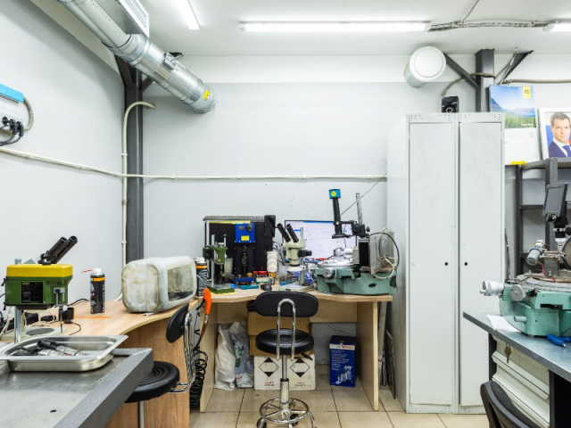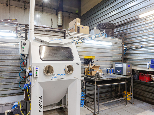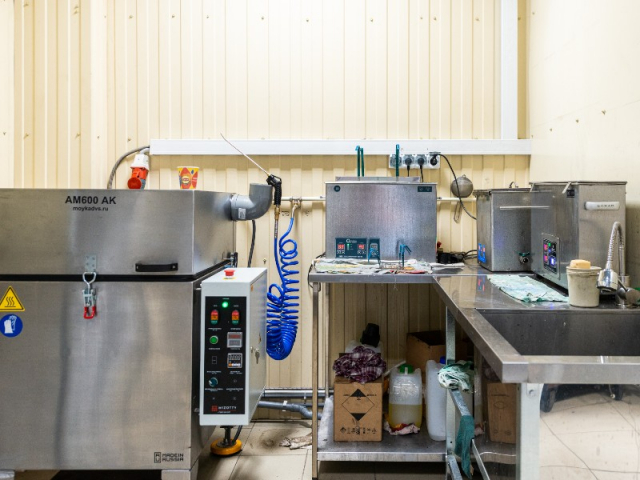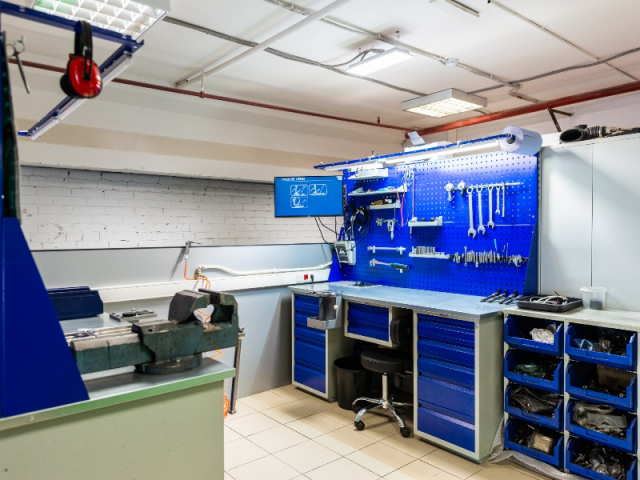 Слесарная зона на 10 постов и полностью оборудованные топливный и турбинный цеха.